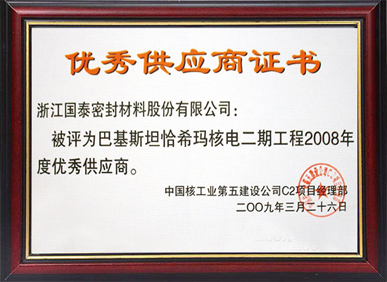 优秀供应商(巴基斯坦恰希玛二期工程)