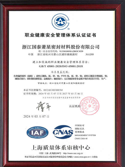 职业健康安全管理体系证书