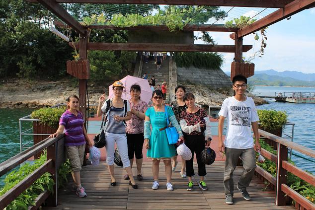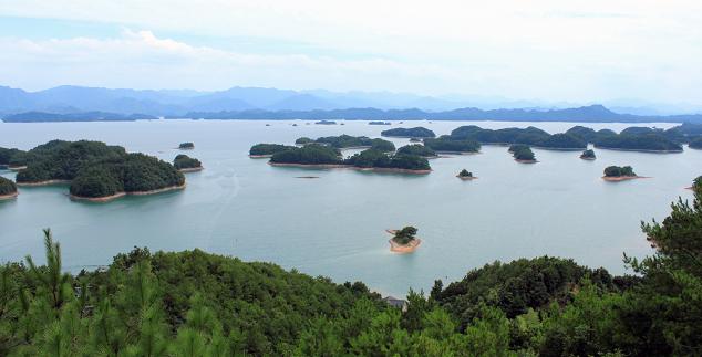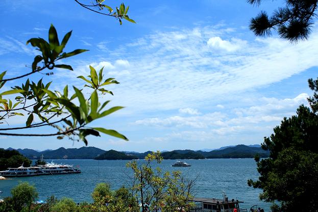 品尝了本地特产的苦丁茶后,我们抵达了观景位置更佳的西观景台。放眼望去,300多个小岛尽收眼底,一座座岛屿就像盛开的梅花,漂浮在水面上,眼前星罗棋布的小岛,就像银河中的星星,面积大一点的岛屿港湾纵横交错,在绿岛和绿水之间画上了一道白色的沙滩弧线,“不上梅峰观群岛,不识千岛真面目”真是名不虚传。兴奋和满足之余,大家纷纷合影留念,用相机记录下着美好的时刻。
