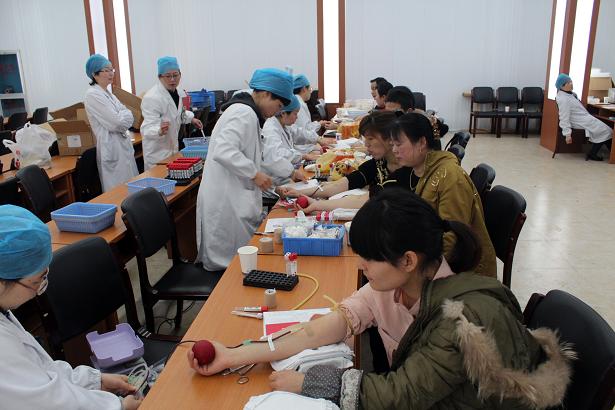 十多位员依次通过体检,顺利采血。增强板垫车间的俞李亚大姐是第二次献血了,可这次她却未能通过体检,原因是是“血压高”。大姐顿时愣住了:平时体检自己血压都正常,怎么这会儿血压就高了?医生了解情况后,认为是某种原因(如运动后,情绪激动,高体力劳动,等等)导致血压暂时升高,建议大姐休息一会儿再检查一次。果然,第二次体检她的血压正常,可以献血了,是血压和大家开了个玩笑。大家释然了,大姐也高兴地采血去了。
