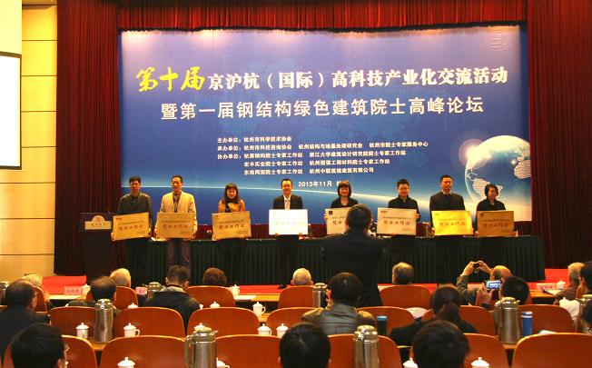 11月15日,第十届京沪杭(国际)高科技产业化交流活动暨第一届钢结构绿色建筑院士高峰论坛在杭州召开。开幕式上,杭州市政府副市长徐文光为sunbet官网密封“杭州市院士工作站”授牌,总经理助理丁关根代表公司登台领奖。